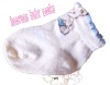 1itemkid's socks 2material:cotton 3charteristics:soft.nice 4payment:irrevocable L/C at sight.T/T 5 size:3''*3'' 6weight:10g 7package:one pair in one opp,500pairs in one carton 8requirememnt: a:price is the factory price. b:the feright is not included. c:the tex is not included. 9:OEM offer is best. 10:the sample is not free. 11:day output:1000 pairs 12:the delievery time (10000): about25 days we are so glad to make friends with you.
